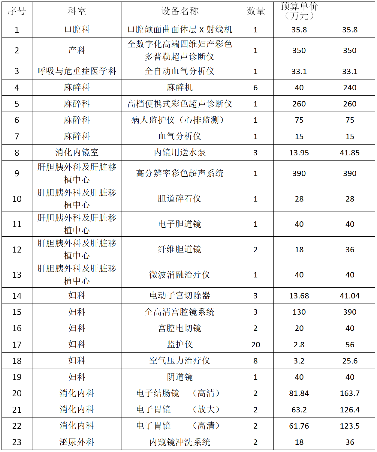 为提高医疗设备采购透明度,加大医疗设备采购前市场调研力度,使医疗设备的管理、使用达到合法、安全、有效的要求,我院本着公平、公正、公开的原则现对下列设备征集相关资料,请有相关产品及信息且具有合法合格资质的供应商与医学装备管理处联系。