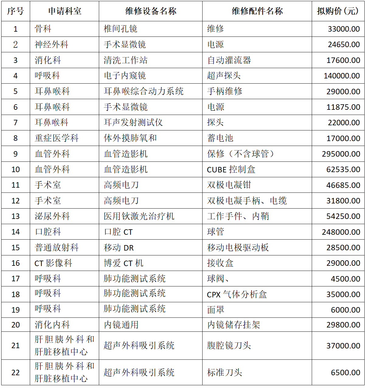 依照医院医疗设备采购程序和院务公开制度,拟对临床科室设备维()修院内谈判采购进行公示个工作日(具体明细如下)