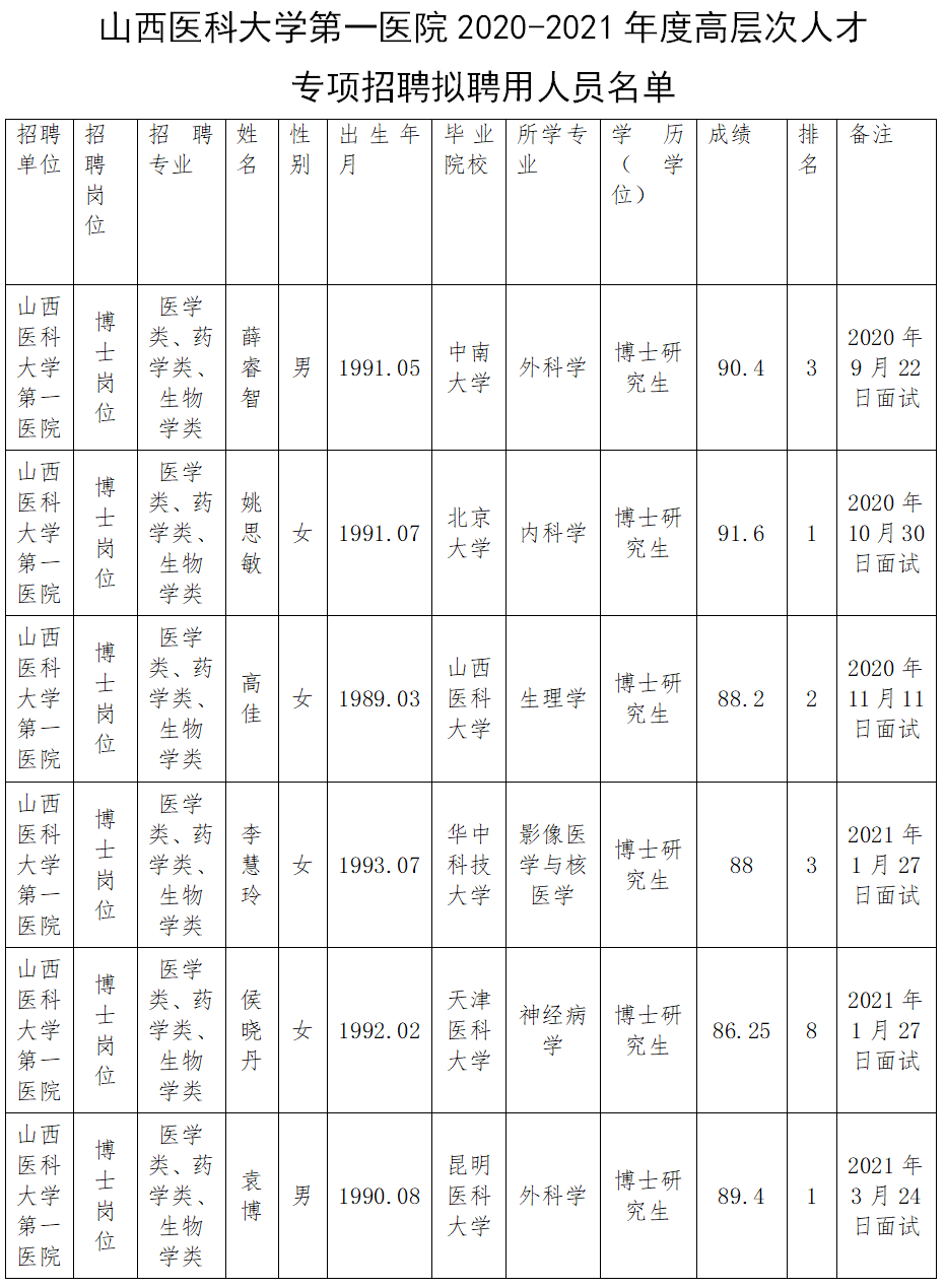 51风流 2020-2021年度高层次人才专项招聘拟聘用人员公示