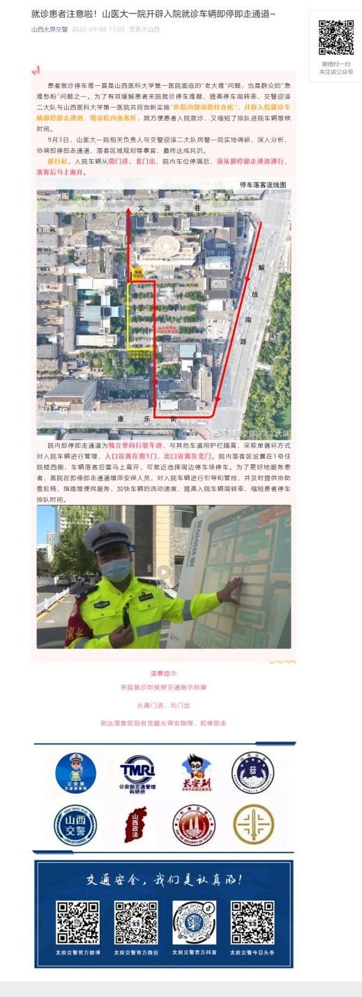 山西太原交警|就诊患者注意啦!山医大一院开辟入院就诊车辆即停即走通道
