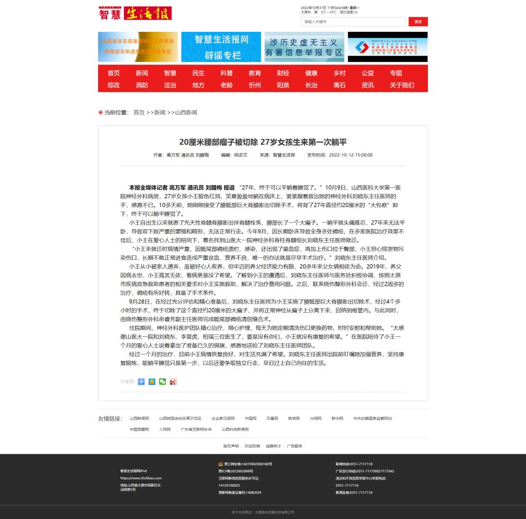 智慧生活报|20厘米腰部瘤子被切除 27岁女孩生来第一次躺平