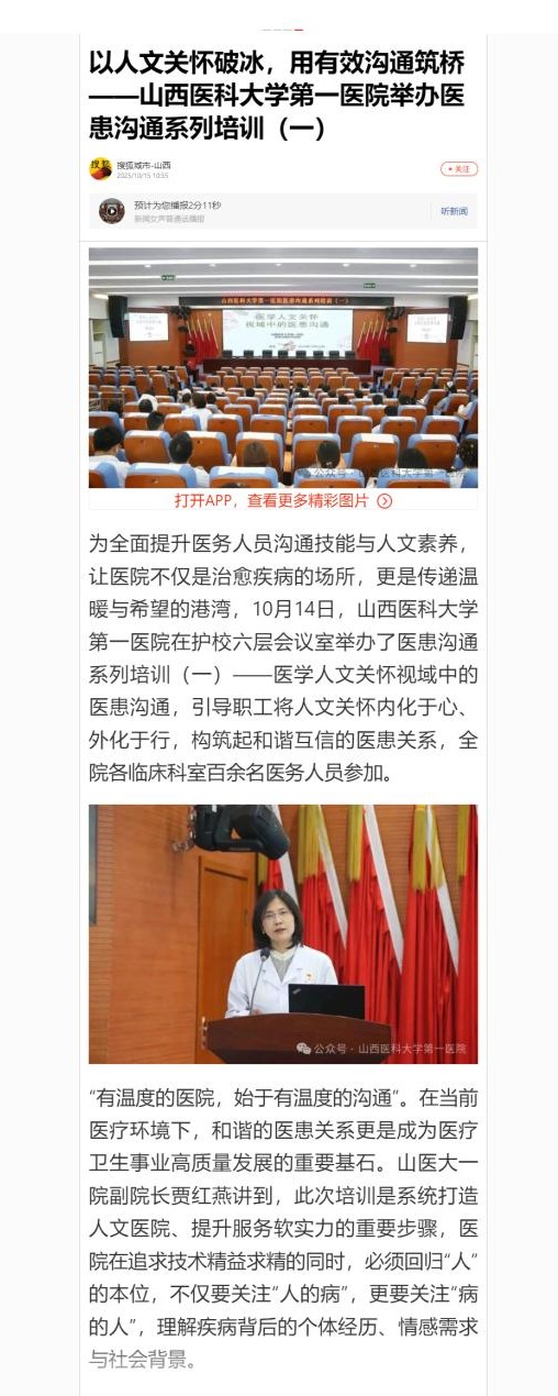 搜狐山西|以人文关怀破冰,用有效沟通筑桥——51风流 举办医患沟通系列培训(一)