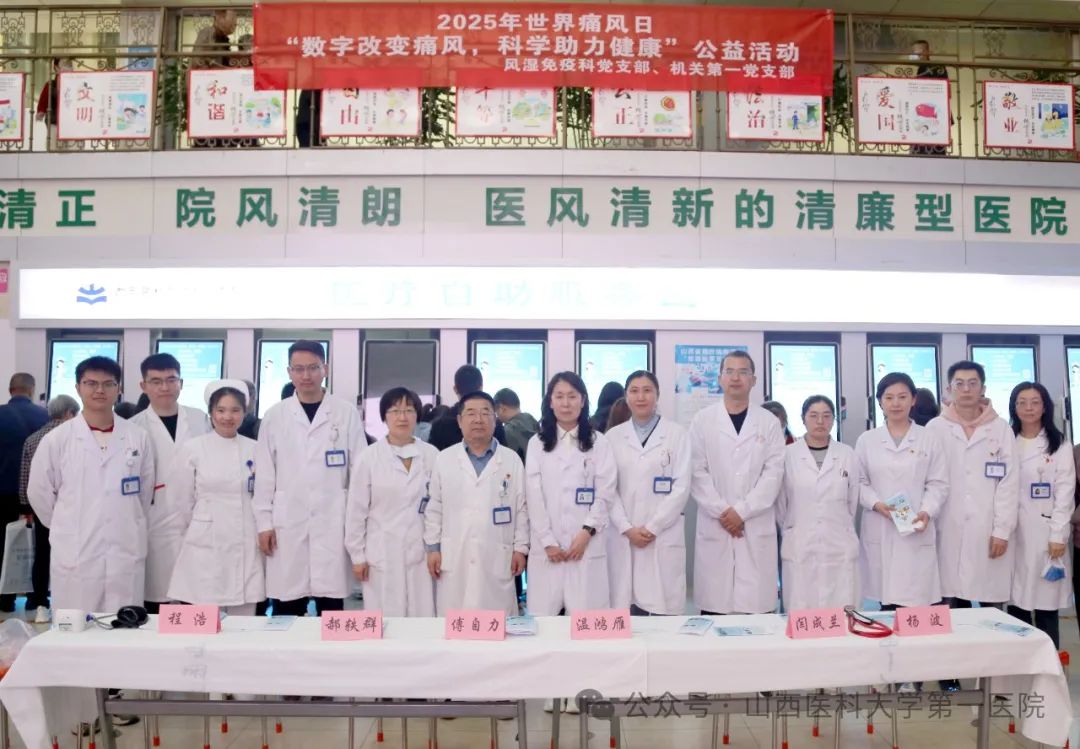 风湿免疫科党支部联合机关第一党支部在门诊二层大厅开展“数字改变痛风,科学助力健康”公益活动。