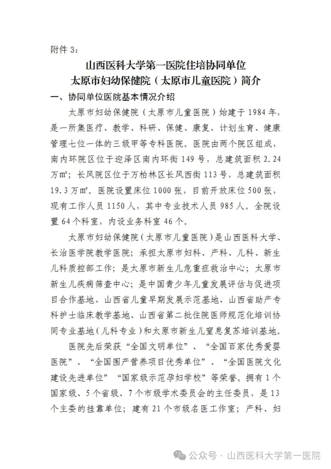 附件3:太原市妇幼保健院(太原市儿童医院)简介
