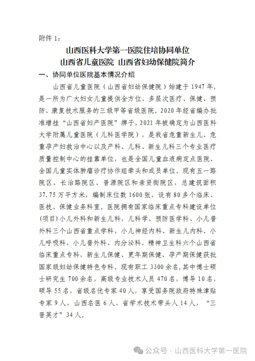 附件1:山西省儿童医院 山西省妇幼保健院简介