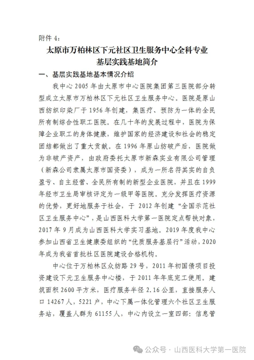 附件4:太原市万柏林区下元社区卫生服务中心简介