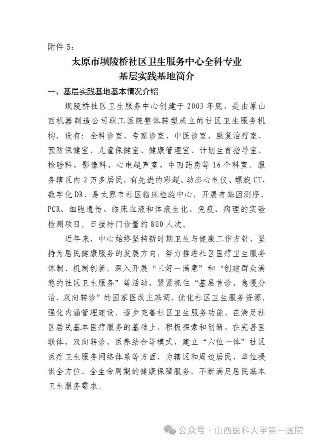 附件5:太原市坝陵桥社区卫生服务中心简介
