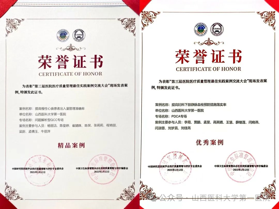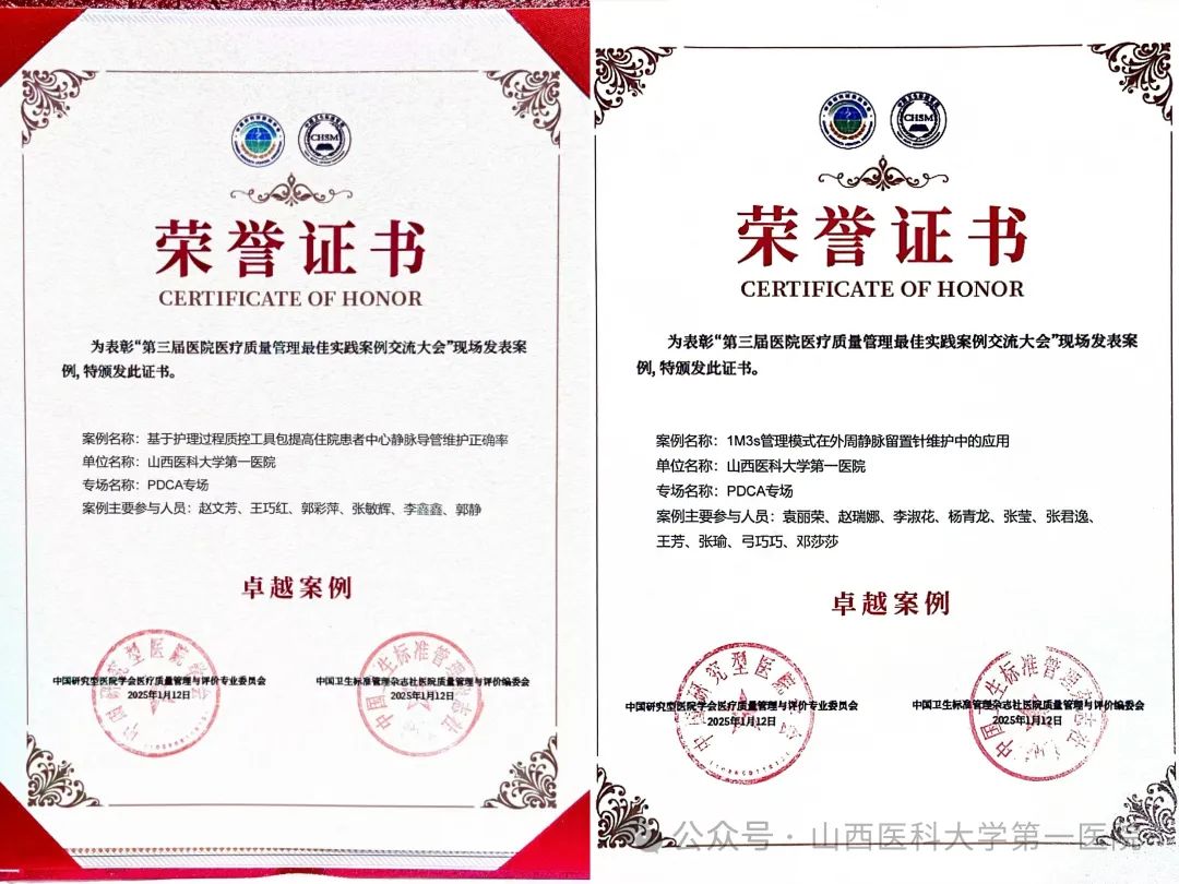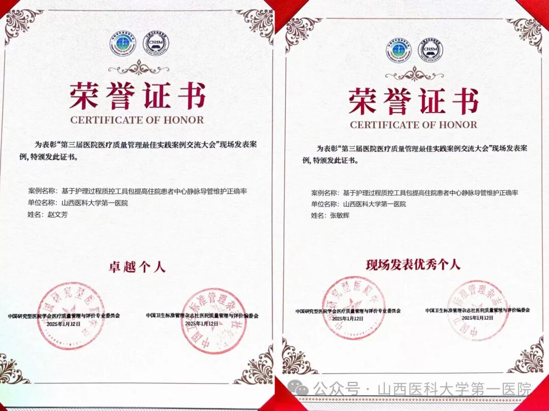 选送的4个参赛项目全部获奖,其中重症医学科、呼吸与危重症医学科护理团队案例项目“基于护理过程质控工具包提高住院患者中心静脉导管维护正确率”“1M3S管理模式理论支撑下对住院患者外周静脉留置针维护管理”荣获“卓越案例”奖;心血管内科的品管圈改善项目“提高慢性心衰患者出入量管理准确率”荣获问题解决型专场“精品案例”奖;妇科案例项目“提高妇科下肢静脉血栓预防措施落实率”荣获“优秀案例”奖。