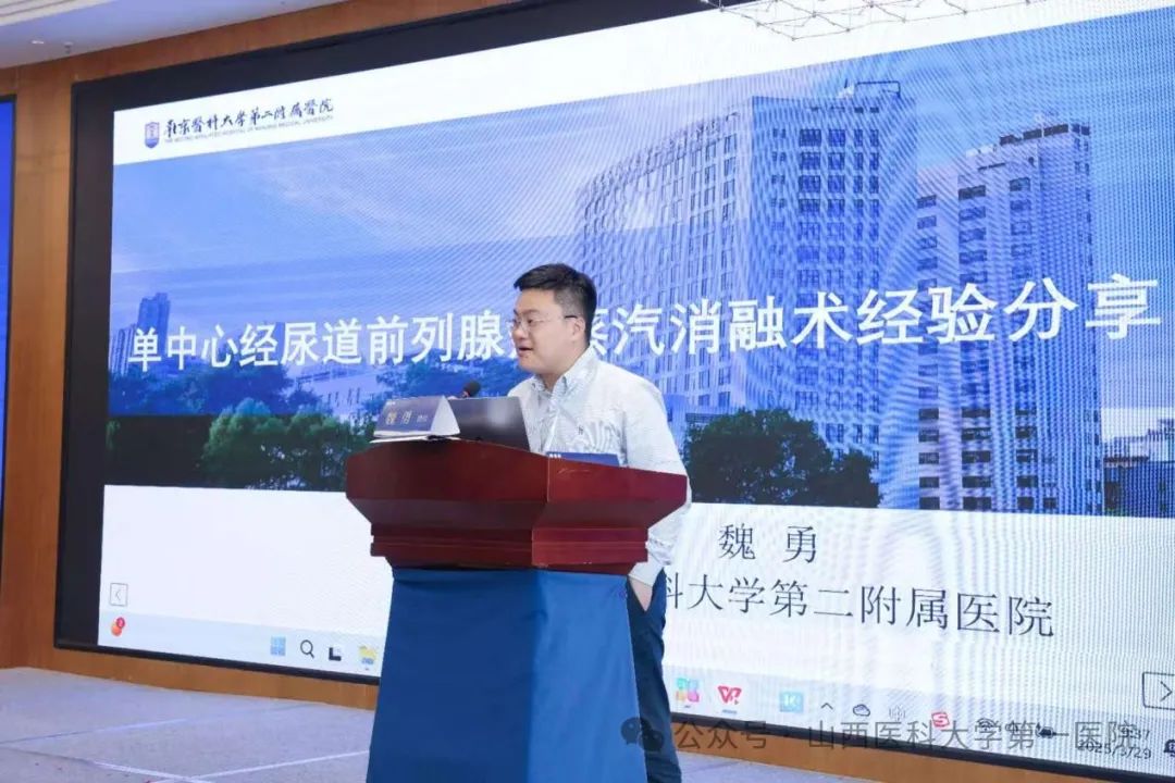 众多省内专家围绕前列腺疾病的不同领域展开分享,山医大一院茹峰讲解了“小体可多华——早治首选,强效速达”,尹楠讲解了光纤铥激光在泌尿外科的应用;山医大二院王璟琦阐述了“探讨饮食结构与前列腺癌发生的风险”;山西白求恩医院程伟介绍了膀胱颈挛缩的诊疗进展;山西省肿瘤医院崔嵛探讨了前列腺癌新辅助治疗;吕梁市人民医院王旺龙介绍了逆行分层解剖性蓝激光前列腺汽化术;山西盈康一生总医院王进分享了前列腺热蒸汽消融术经验;山西省中医药大学附属医院梁志刚分享了“LUTS/BPH流行病学现状临床治疗方案及案例”。专家们的报告涵盖前列腺疾病多个方面,展示了当前的研究热点和最新成果,为临床实践提供了有力的理论支持。