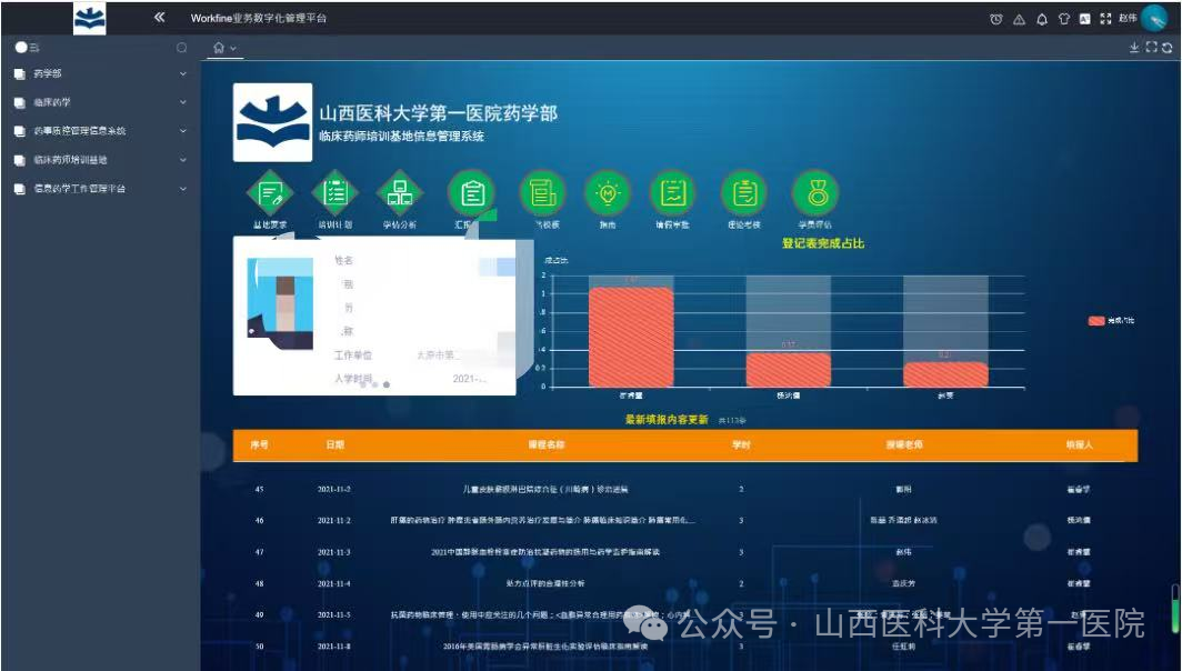 作为国家卫生健康委认证的临床药师培训基地,山医大一院药学部自2012年起承担山西省及周边省份临床药师规范化培训任务,迄今已培训临床药师130余人次,为区域医疗单位输送了具备专业服务能力的药学人才;作为山西医科大学药学院临床药学专业实践基地,药学部自2016年起承担山西医科大学药学院5届共51名临床药学专业本科生带教工作,同时还负责山西医科大学药学院四年制本科生、专业型硕士生带教工作,至今已培养10届硕士生共11人,完成上百名本科生的生产实习及毕业课题工作。