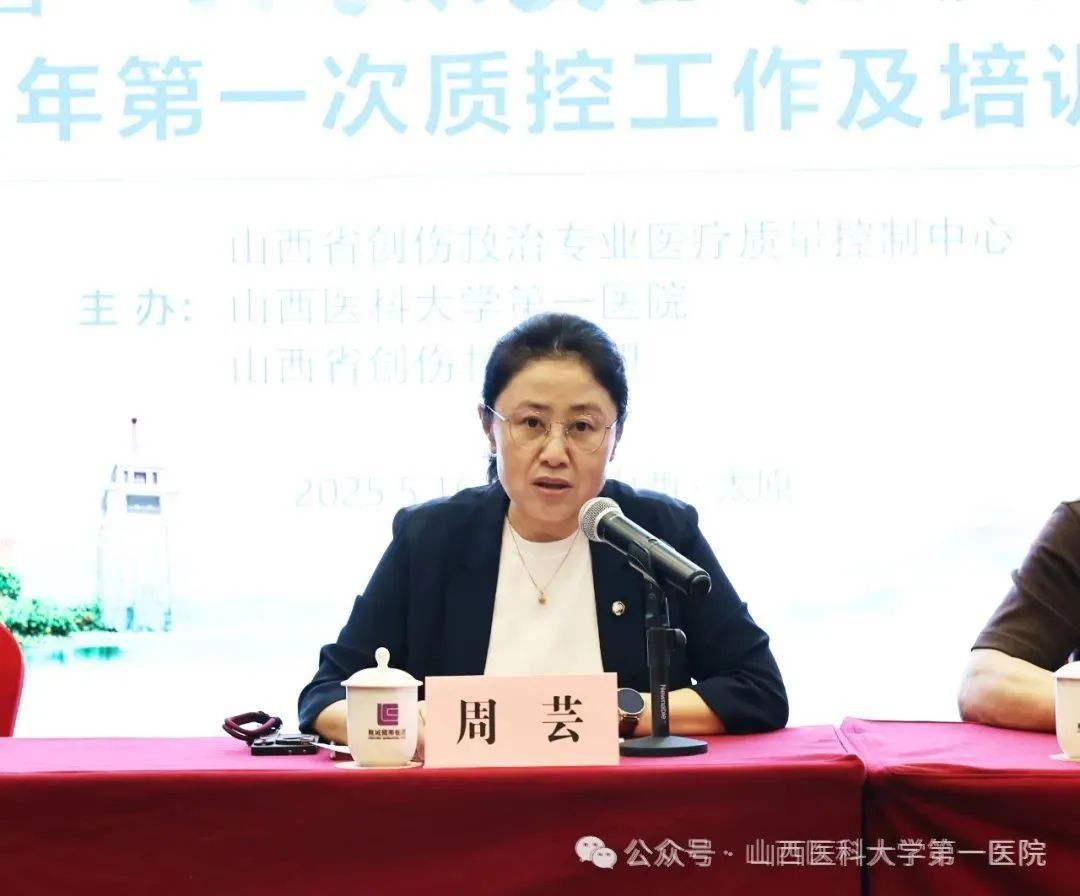 周芸院长首先向莅临会议的各位专家和同仁致以诚挚欢迎和衷心感谢。她讲到,受省卫健委委托,山医大一院牵头推动山西省创伤中心及救治体系建设,建成了创伤质控数据平台,成立了山西省创伤救治专业质控中心和专家委员会;目前,全省创伤中心建设单位有118所,创伤联盟医院超过100所,创伤中心覆盖11个地市并逐步成立各地市创伤质控中心,建成了省、市、县(区)三级质控体系,对山西省创伤救治质量管理和关键指标改进具有重要作用,显著提升了区域协同救治能力;下一步将继续完善区域质控网络建设,强化动态指标监测和数据分析,优化质控指标,通过学术研讨、基层培训与评审,制定省内共识推动创伤中心的发展,运用信息化平台完善创伤数据,通过质控指标分析推动整体救治能力提升。总之,山医大一院将持续为各个质控中心提供保障,搭建学习交流的平台,共同推动山西省质控工作规范化、科学化、信息化建设。