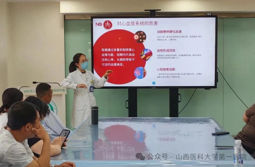 呼吸与危重症医学科康复治疗师李志敏借助每两周一次的患教会对在科患者和家属开展了“烟草与健康——禁烟控烟”科普讲座,深刻剖析烟草危害,传授科学戒烟知识。