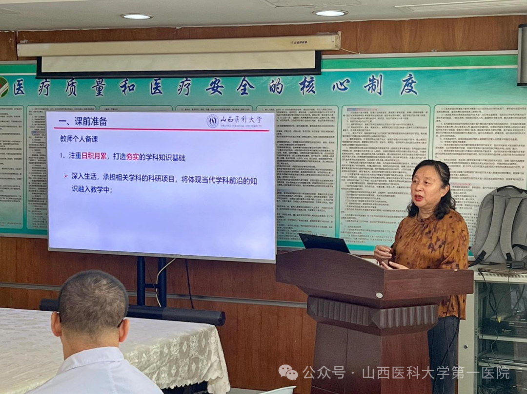 本次教研活动特邀教育部学位与研究生教育评审专家张爱平莅临,不仅带来精彩讲座,还对神经外科教师授课试讲进行了专业点评。张爱平是山西省教育厅教师资格认定专家评委、山西省教师高级专业技术职务评审委员会评委,全国普通高等医学院校“十三五”“十四五”规划教材建设指导委员会委员和《无机化学》教材主编,山西省药品评审专家,山西医科大学教育研究兼职研究员,《药物评价研究》编委;参与4项国家自然科学基金项目、1项国际合作项目,主持山西省自然科学基金等10项科研课题,在国内外核心期刊上发表学术研究论文70余篇,其中SCI收录25篇,EI收录2篇,授权国家发明专利1项,同时担任Materials Science&Engineering C 等SCI期刊和国内多本核心期刊杂志审稿人,在学术领域极具权威性与影响力。