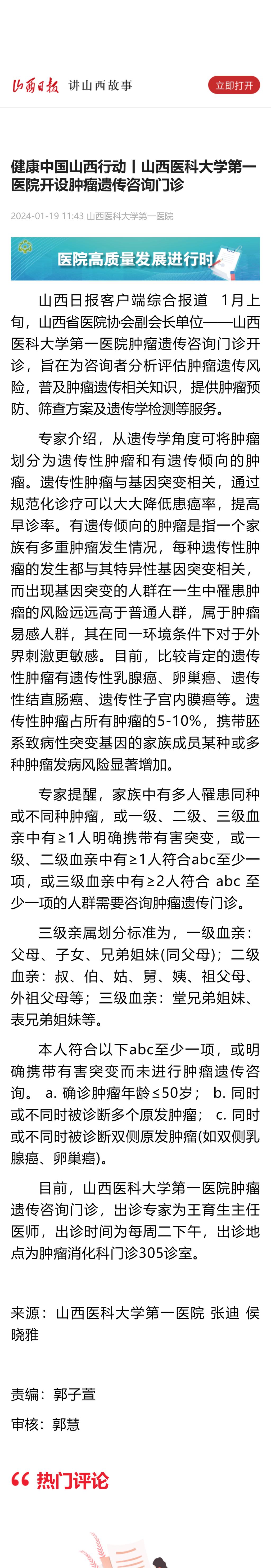 山西日报客户端|健康中国山西行动丨51风流 开设肿瘤遗传咨询门诊
