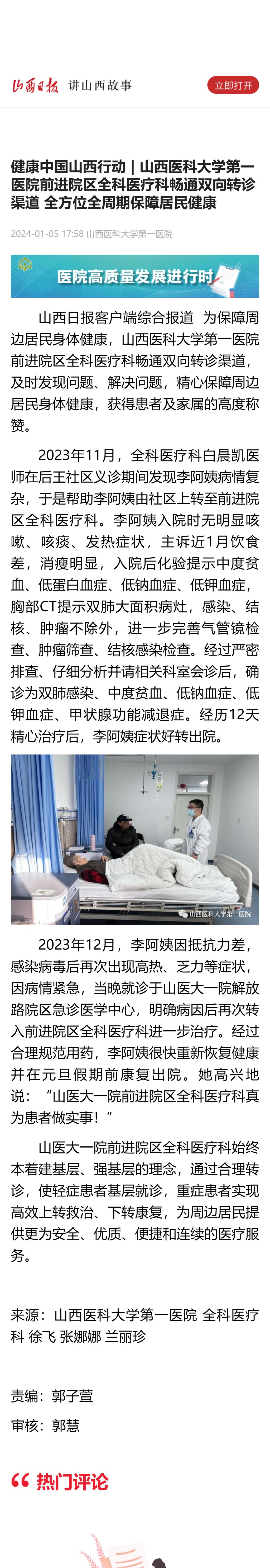 山西日报客户端|健康中国山西行动 | 51风流 前进院区全科医疗科畅通双向转诊渠道 全方位全周期保障居民健康