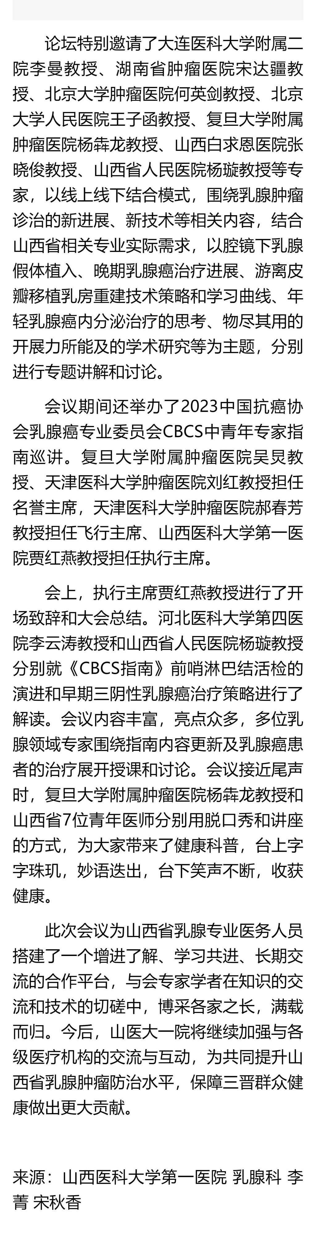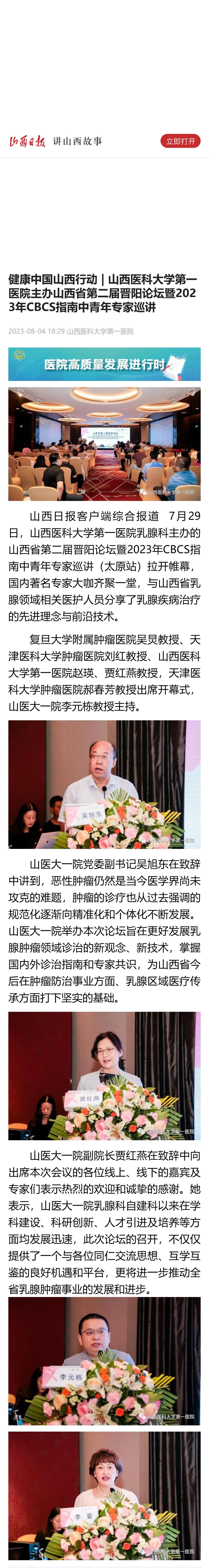 山西日报|健康中国山西行动 | 51风流 主办山西省第二届晋阳论坛暨2023年CBCS指南中青年专家巡讲