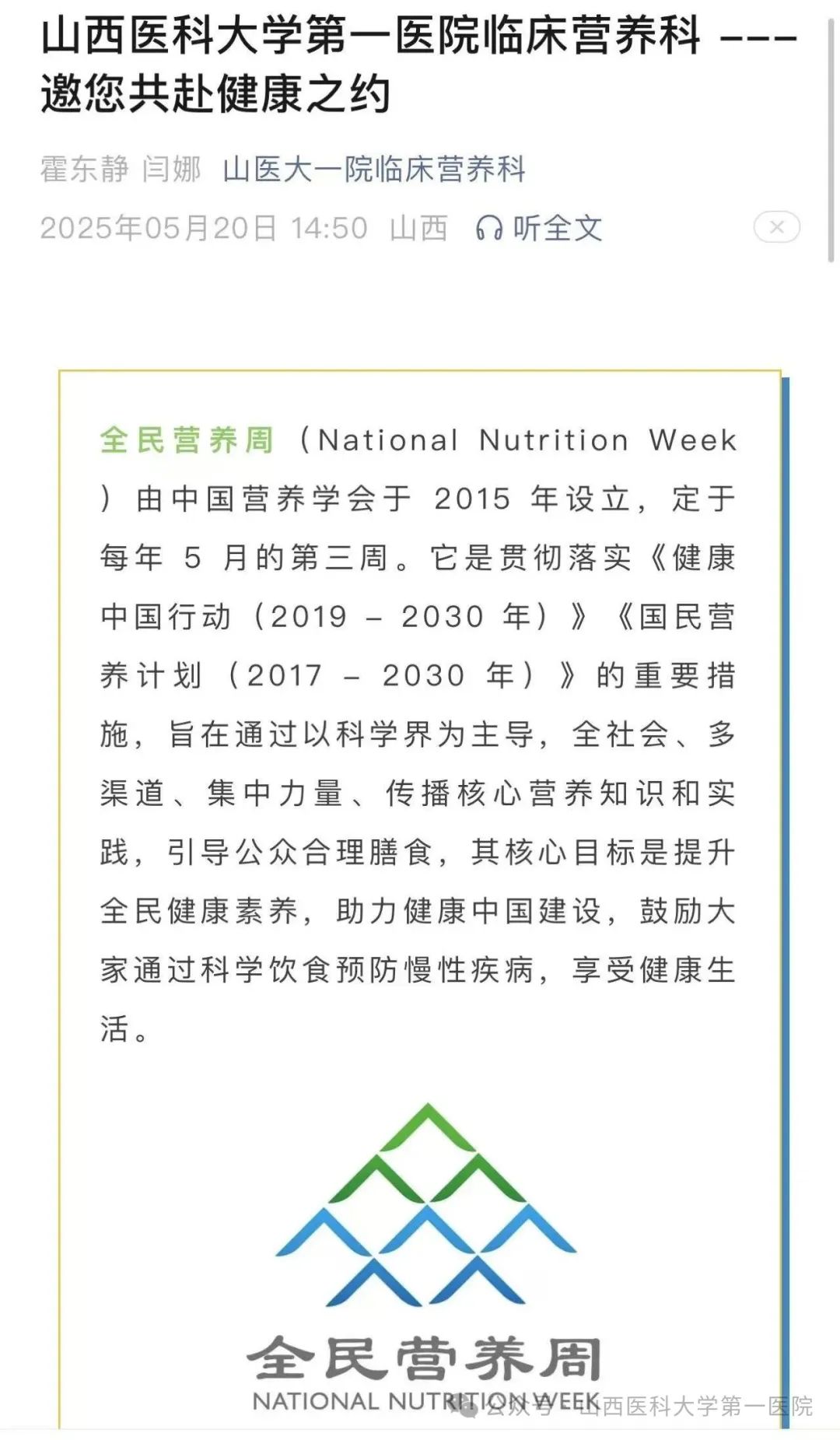 活动期间,临床营养科利用山医大一院微信公众号、临床营养科视频号,积极宣传营养科普知识、义诊活动内容、减重小知识等,普及了“科学减重的核心在于能量平衡”,通过合理控制摄入热量与增加能量消耗,形成健康的“热量缺口”,但这一过程必须兼顾营养均衡、运动安全和心理调节,才能真正实现减脂不伤身、体重不反弹的目标。