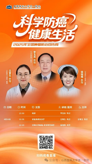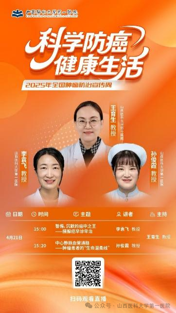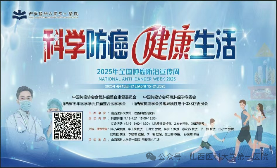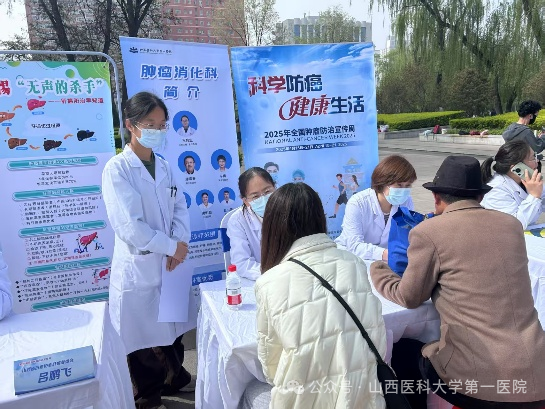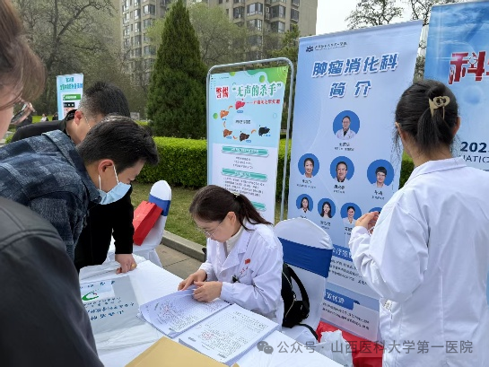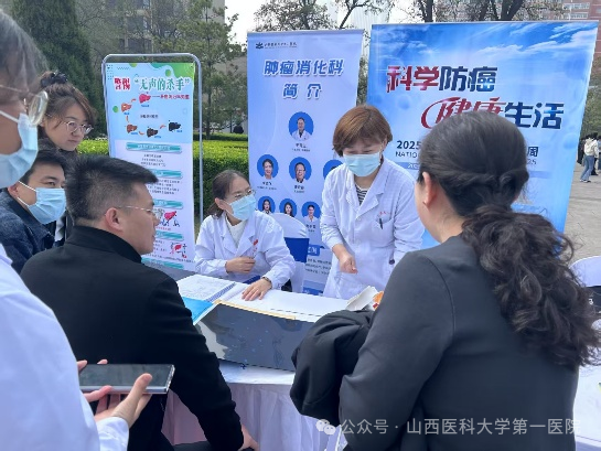 4月19日,科室医护团队参与了山西省抗癌协会在龙潭公园举办的“科学防癌,健康生活”义诊活动,通过多种形式向群众普及了肝癌、胰腺癌等疾病的早期信号及预防措施,现场呼吁大家戒烟限酒、合理膳食,保持健康的生活方式,吸引30余名群众参加。