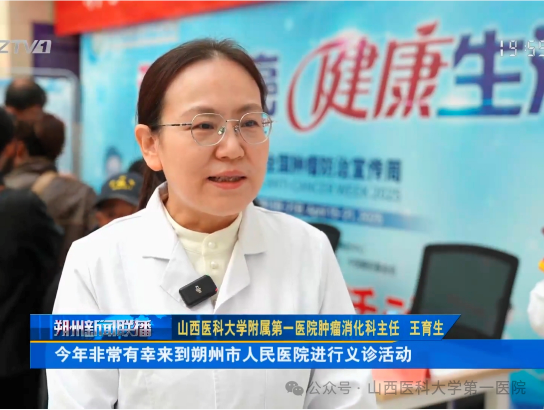 为促进优质医疗资源下沉,4月15日,肿瘤消化科医护人员在王育生主任的带领下赴朔州市人民医院开展义诊活动,为当地群众提供消化道肿瘤风险评估、影像报告解读等服务,共接受100余人次咨询,获得当地居民一致好评。
