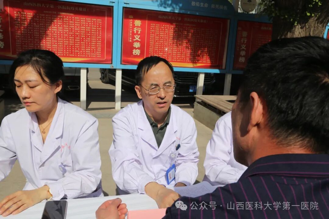 副院长韩清华教授、心血管内科负责人靳春荣主任医师带领20余位医护人员组成的专家团队在门诊二层大厅开展了义诊活动,现场还提供了血压测量、用药指导等医疗服务。