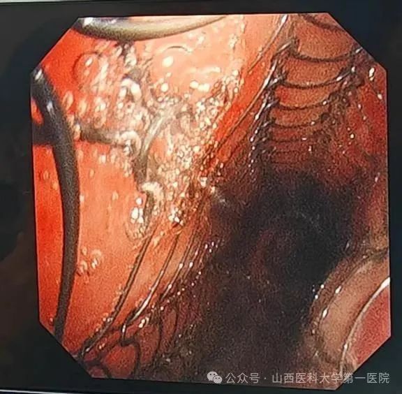 5月10日下午,重症医学科高海晋医生敏锐察觉到患者血氧饱和度下降,呼吸与危重症医学科呼吸介入团队得知情况后快速响应,尹建升医生与李艳青护士为患者行床旁支气管镜检查,发现气管支架移位,这是气管支架置入术后的常见并发症,经过调整后支架重新支撑起气管狭窄部位。
